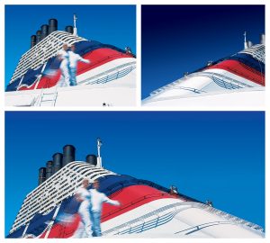 Photo retouching used to extend the ‘nose’ of the ferry image, using another shot from the other side of the ship.